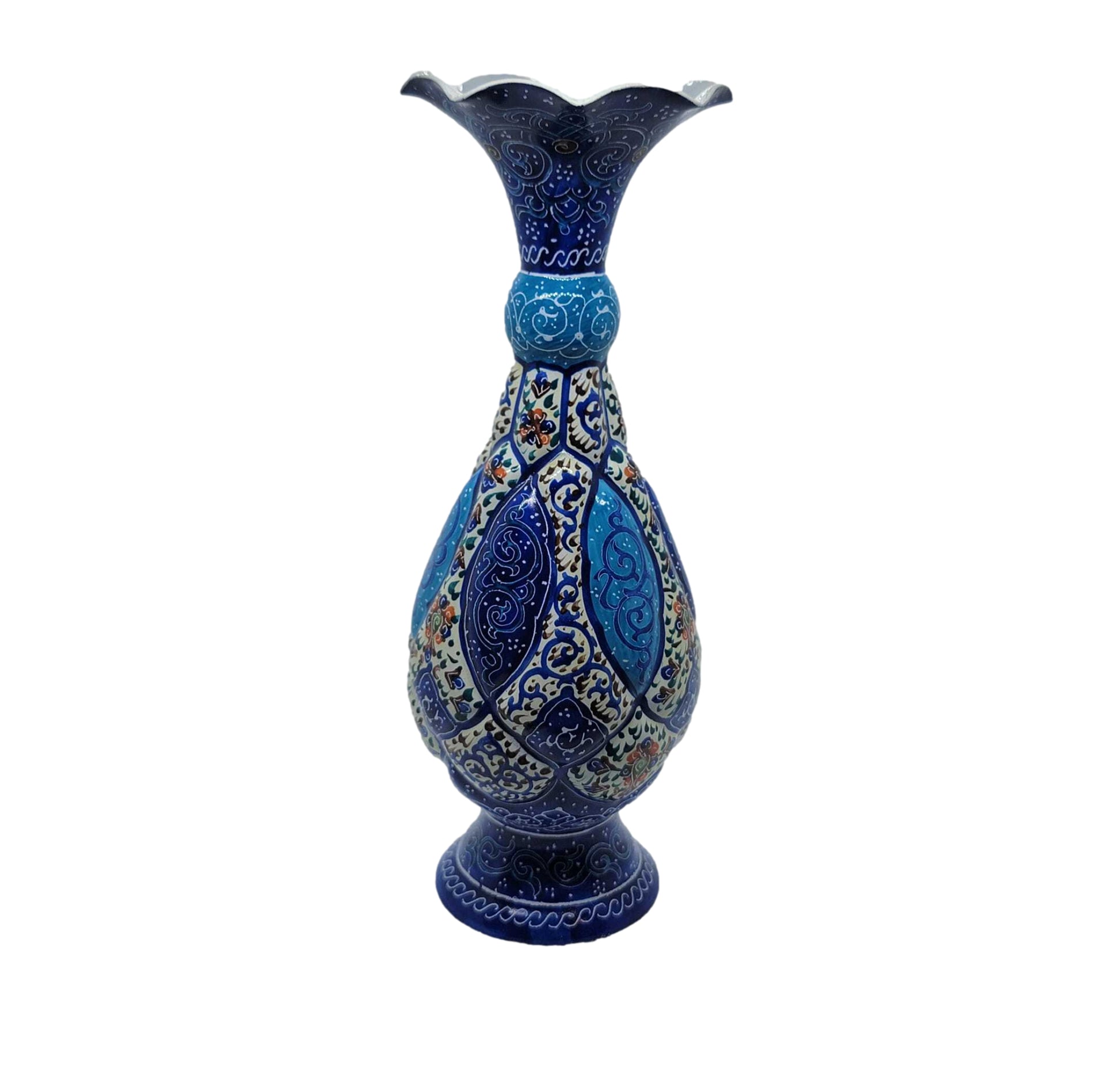 Design 1005 showcases the refined artistry of Persian minakari enameling applied to functional vessel design, characterized by its harmonious compositional balance and exceptional technical execution. Accomplished artisans hand-paint sophisticated decorative patterns combining delicate botanical elements with geometric ornamentation onto a copper pot using traditional enamel pigments. Through successive high-temperature firings, the glazes achieve permanent vitrification, producing a non-porous surface of superior durability and resistance to thermal fluctuation. The thoughtfully orchestrated color palette demonstrates advanced chromatic understanding, with each hue contributing to overall visual coherence and luminous depth. Design 1005 exemplifies the demanding standards of authentic minakari production, requiring extensive apprenticeship and unwavering precision throughout the creation process. This individually crafted pot merges practical functionality with artistic distinction, offering collectors an authentic expression of Persian cultural heritage and generations of refined enameling mastery.